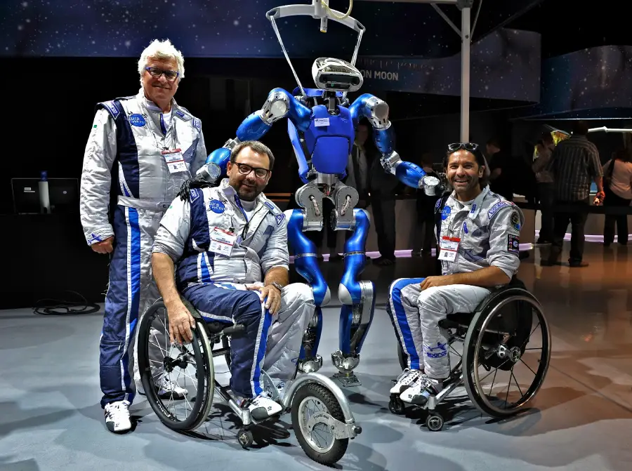 Both do not have the use of their legs and fly using only their hands, thanks to special controls designed and built by Alessandro himself, an aerospace engineer.